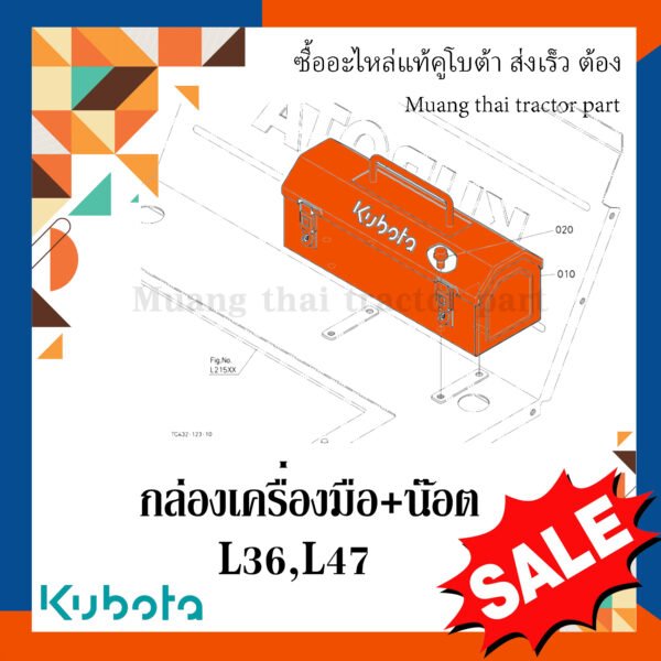 กล่องเครื่องมือ Kubota ขนาด กว้าง 12 ซม. ยาว 35.5 ซม. สูง 12.5 ซม. รถแทรกเตอร์คูโบต้า รุ่น L36DT, L47DT tc432-18510