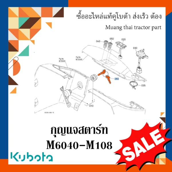 ✅ กุญแจสตาร์ท สำหรับรถแทรกเตอร์และรถเกี่ยวข้าว Kubota รุ่น M6040 – M108, DC60, DC68