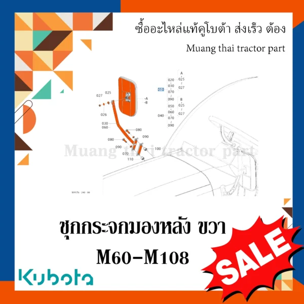 ✅ ชุดกระจกมองหลังข้าง ซ้าย สำหรับเพิ่มทัศนวิสัยในการขับขี่และใช้งาน รถแทรกเตอร์ KUBOTA รุ่น M60 – M108