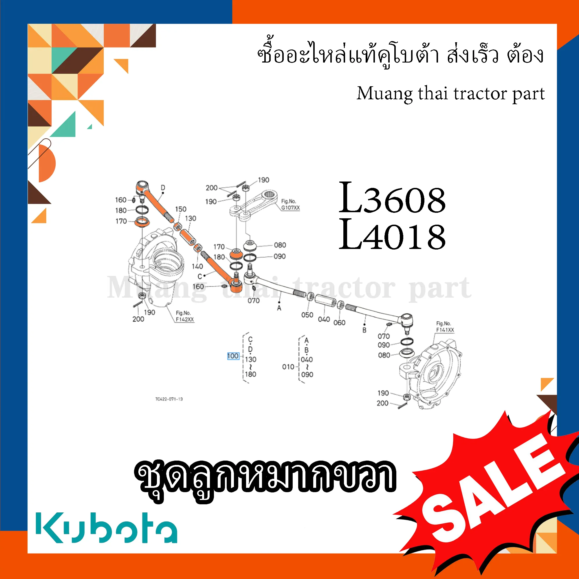 ✅ ชุดลูกหมากพวงมาลัยฝั่งขวา สำหรับรถแทรกเตอร์คูโบต้ารุ่น L3608 และ L4018