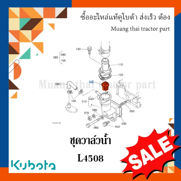 ✅ ชุดวาล์วน้ำ สำหรับควบคุมการไหลเวียนของน้ำในระบบระบายความร้อนเครื่องยนต์ รถแทรกเตอร์ KUBOTA รุ่น L4508