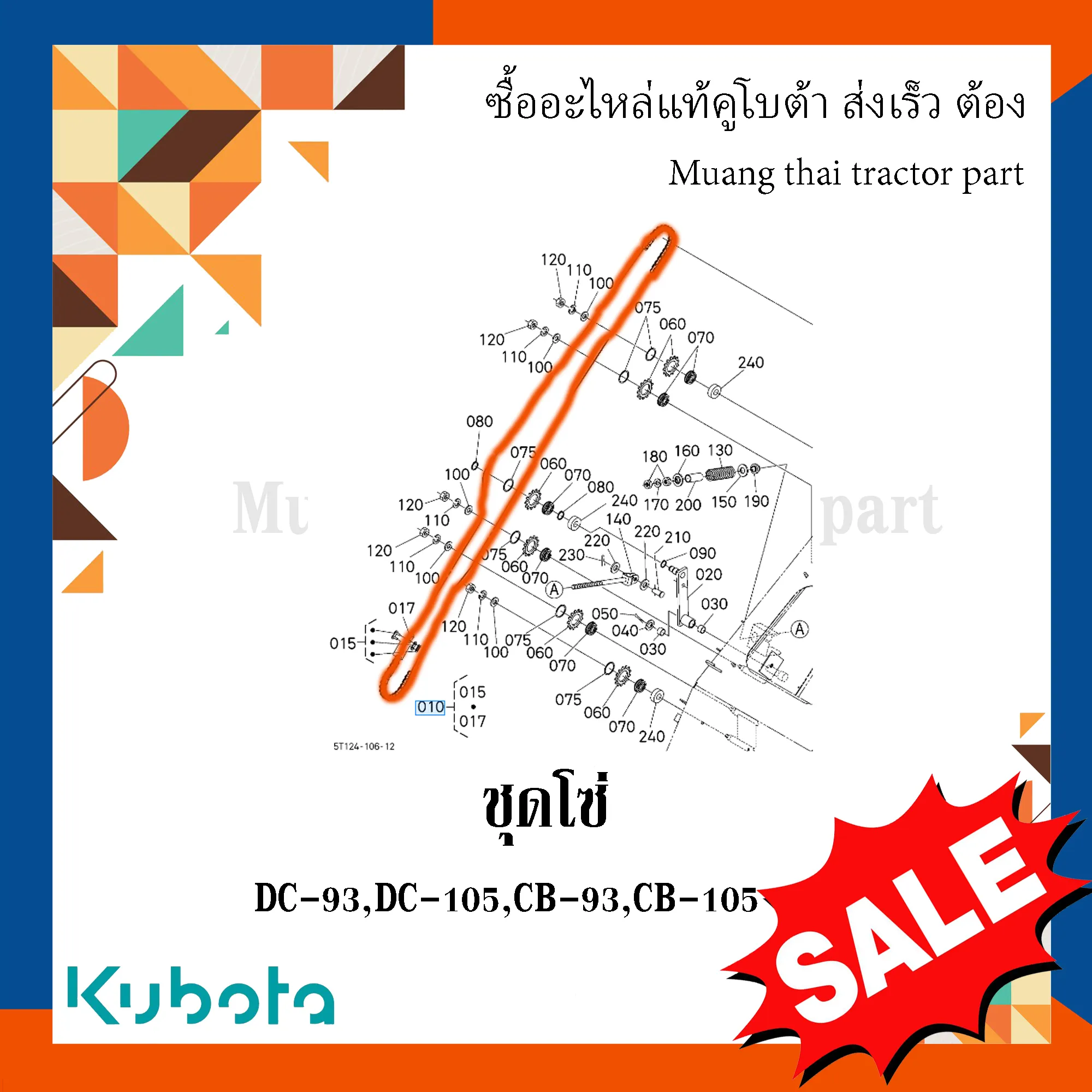 ชุดโซ่ขับชุดเก็บเกี่ยว รถเกี่ยวข้าวคูโบต้า รุ่น DC93, DC105 5T124-46402