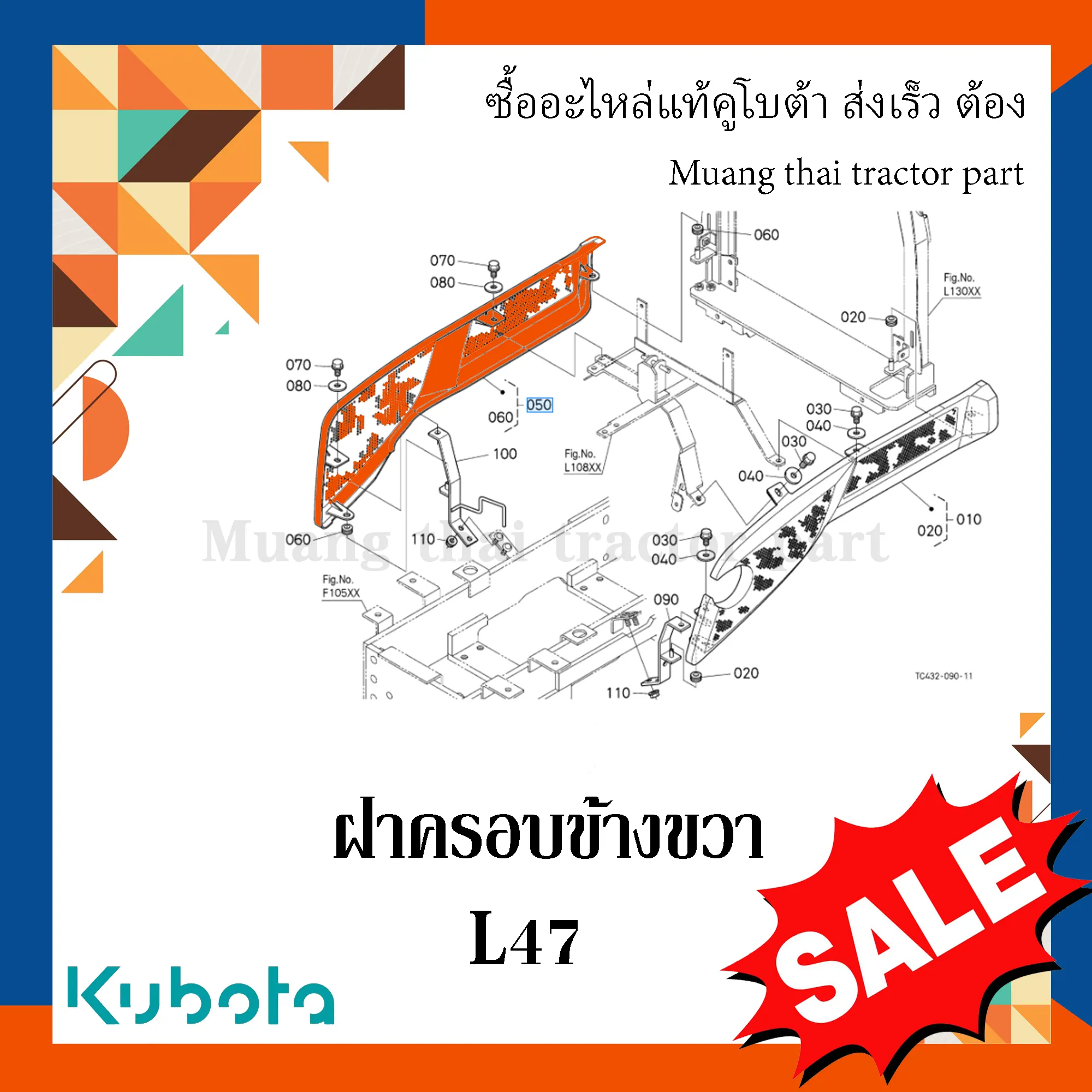 ✅ ฝาครอบข้างขวา สำหรับรถแทรกเตอร์ KUBOTA รุ่น L4708 ใช้สำหรับปกป้องชิ้นส่วนภายในตัวรถ เช่น เครื่องยนต์ และระบบส่งกำลัง จากฝุ่นละออง น้ำ และสิ่งสกปรก