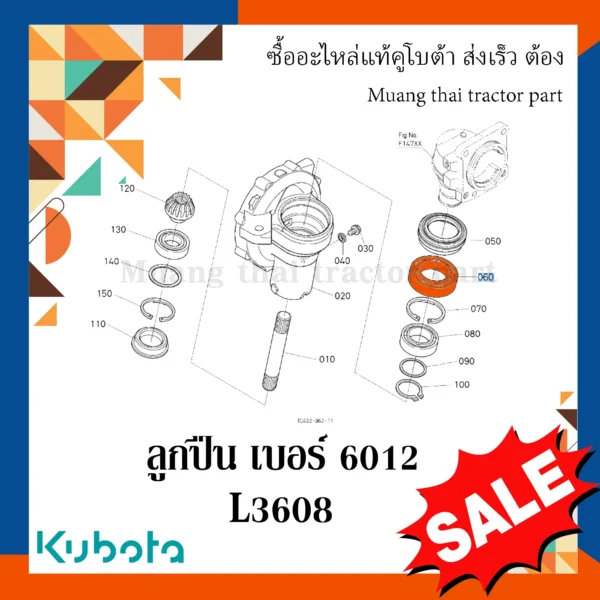 ✅ ลูกปืนเพลาตั้งล้อหน้า สำหรับรองรับการหมุนของเพลาตั้งล้อหน้า ให้ล้อหน้าเคลื่อนที่ได้อย่างราบรื่น รถแทรกเตอร์ KUBOTA รุ่น L3608