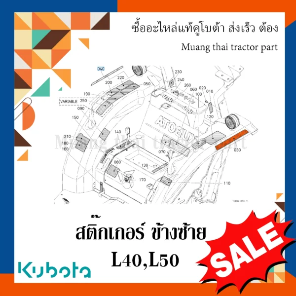 สติ๊กเกอร์สำหรับติดบริเวณบังโคลนซ้ายของรถแทรกเตอร์ Kubota รุ่น L4018 และ L5018