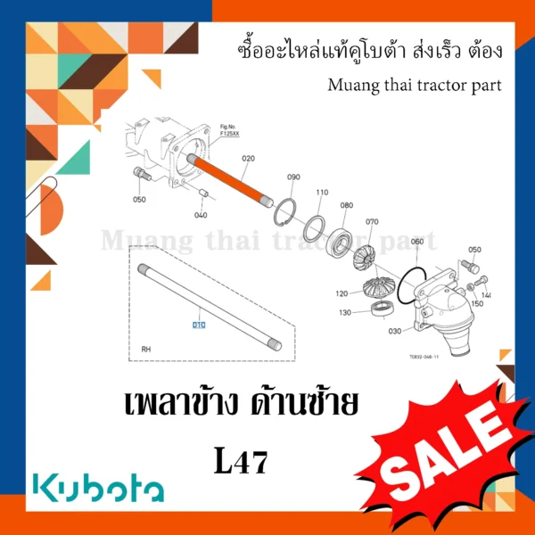 ✅ เพลาเฟืองท้าย หรือเพลาข้างด้านซ้าย สำหรับรถแทรกเตอร์ KUBOTA รุ่น L4708, L5018
