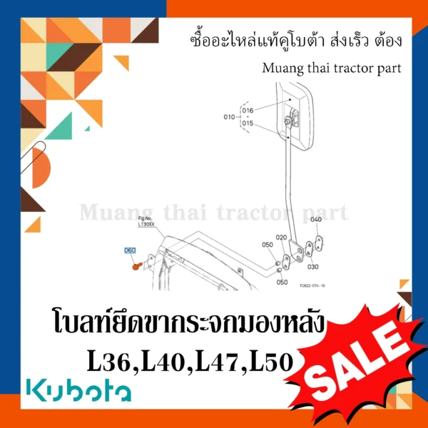 ✅ โบลท์สำหรับยึดขากระจกมองหลัง รถแทรกเตอร์ KUBOTA รุ่น L3608, L4018, L4708, L5018