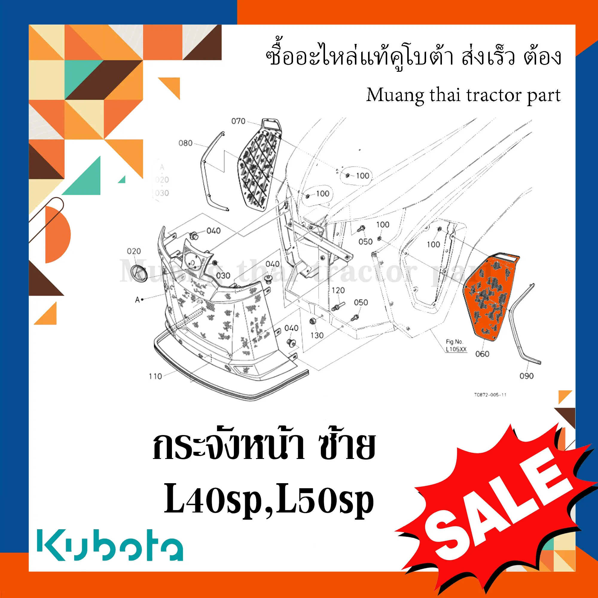✅ กระจังหน้าซ้าย สำหรับรถแทรกเตอร์ KUBOTA รุ่น L4018SP และ L5018SP