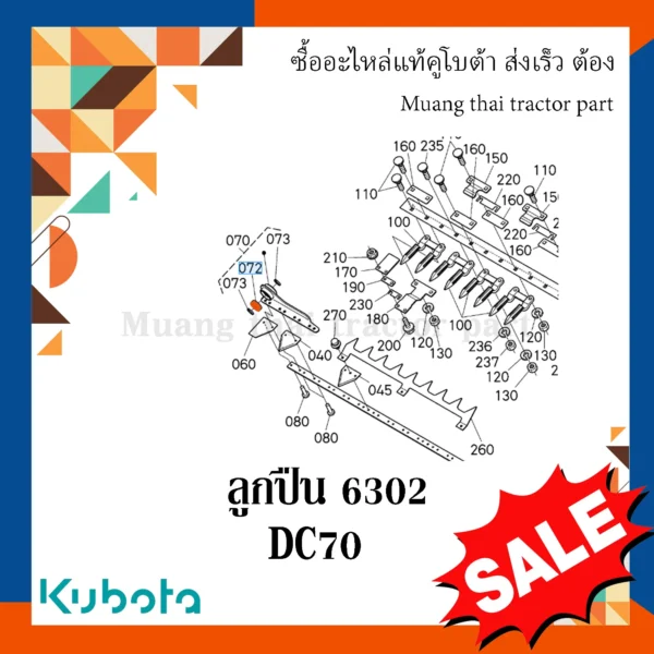 ลูกปืนคันชักใบมีด รถเกี่ยวข้าวคูโบต้า รุ่น DC70 เบอร์ 6302 (รหัส 08141-06302)