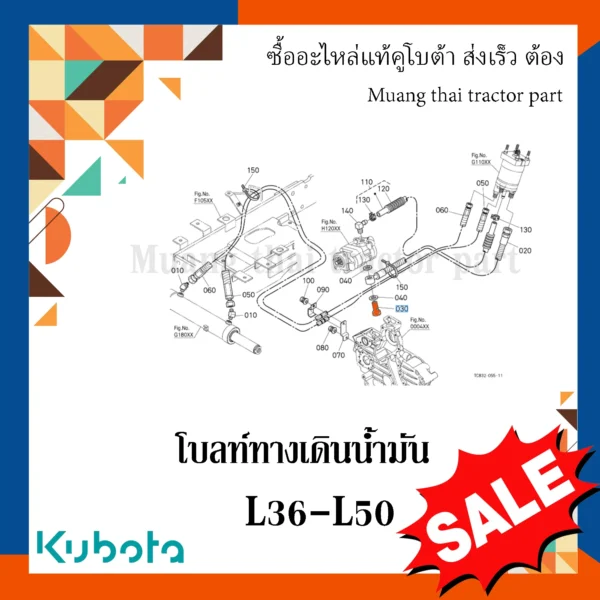 ✅ โบลท์ทางเดินน้ำมัน สำหรับท่อส่งน้ำมันไฮดรอลิคในรถแทรกเตอร์ KUBOTA รุ่น L3608 – L5018