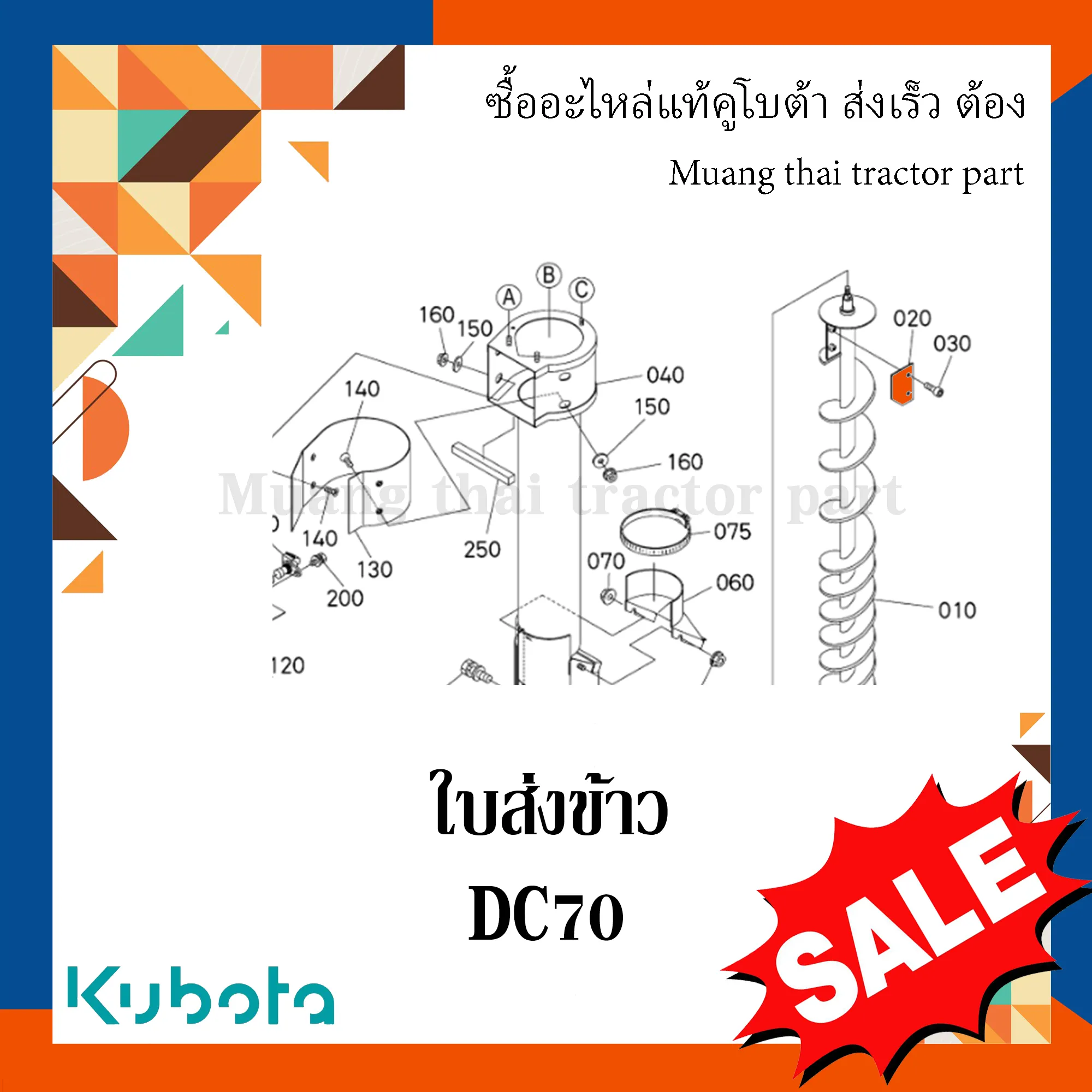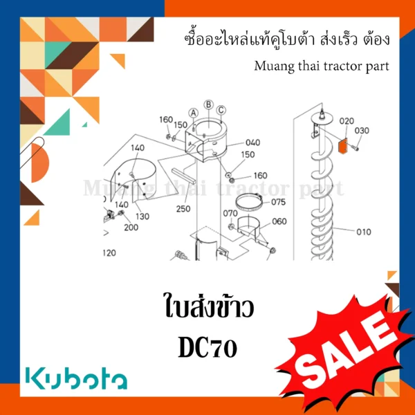 ✅ ใบส่งข้าว สำหรับเพลาดอกสว่านแนวตั้งตัวที่สอง ของรถเกี่ยวข้าว KUBOTA รุ่น DC70