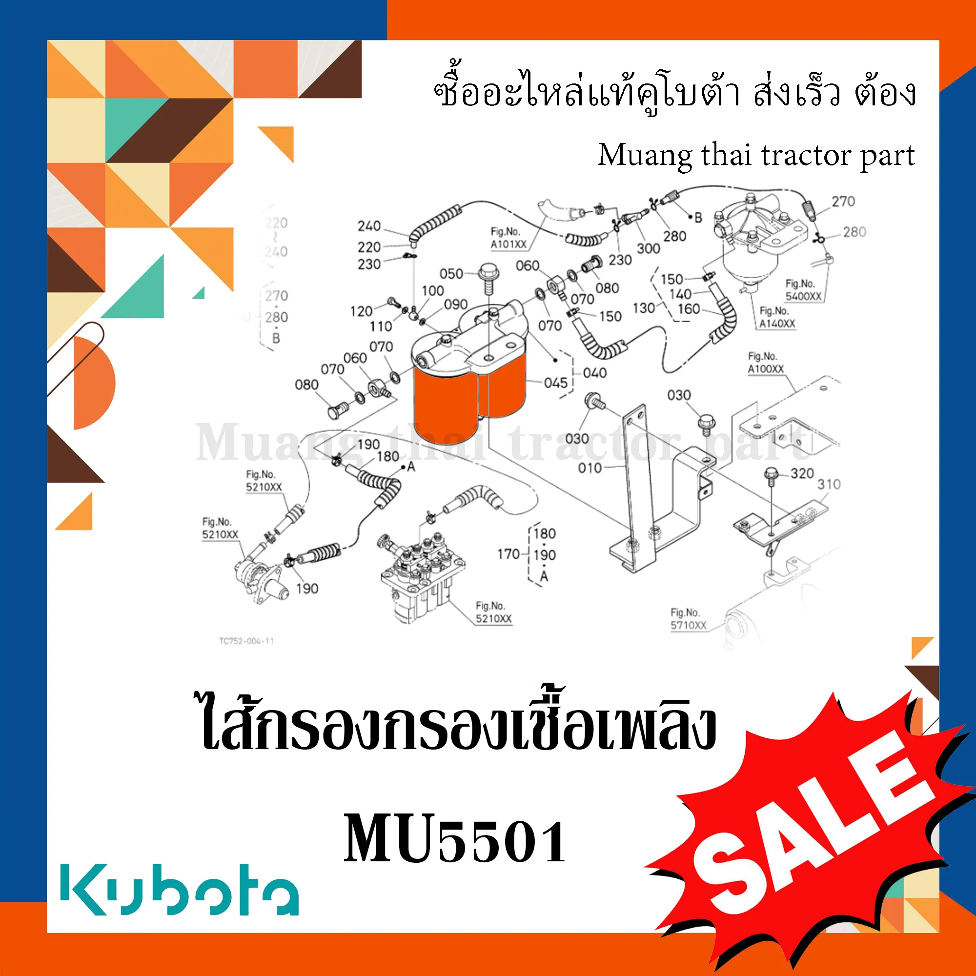 ✅ ไส้กรองเชื้อเพลิง สำหรับรถแทรกเตอร์ KUBOTA รุ่น MU5501